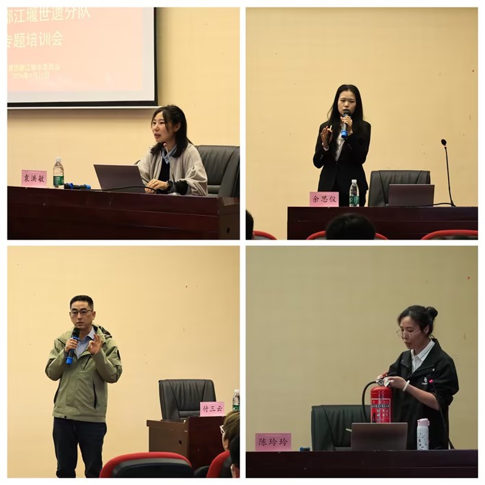 培训伊始,团都江堰市委维权部部长、志工部负责人袁洪敏围绕志愿服务基础认知展开授课,系统梳理项目背景与岗位规范,帮助志愿者明确职责定位。随后,都投集团(阳光公司)余思仪老师带来双语服务专题课程,结合实际服务场景,聚焦跨文化沟通技巧、服务流程规范等核心内容,以实景演练、小组互动等形式传授实用技能,现场学习氛围浓厚。都江堰市文广体旅局付三云老师深入解读都江堰双遗文化的历史底蕴与人文价值,丰富志愿者文化储备,为讲好世遗故事夯实知识基础。都江堰市应急局陈玲玲老师则聚焦志愿服务安全保障,通过真实案例讲解应急处置流程与风险防范技巧,为志愿服务筑牢安全防线。