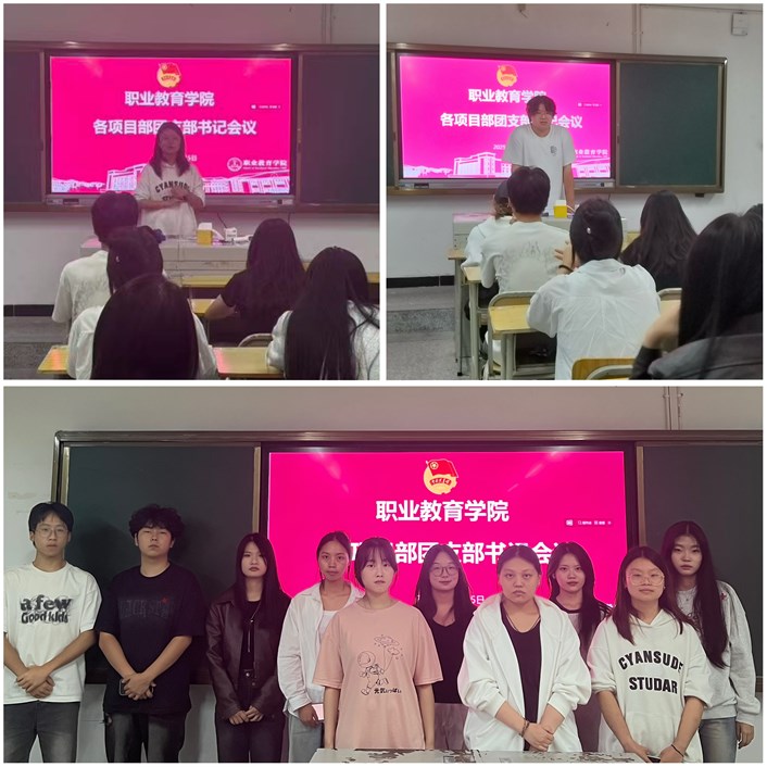 为进一步加强基层团组织建设,提升各项目部团支部书记的工作能力,职业教育学院团总支秘书处于10月15日在第二教学区D座119教室召开了学院各项目部团支部书记会议。