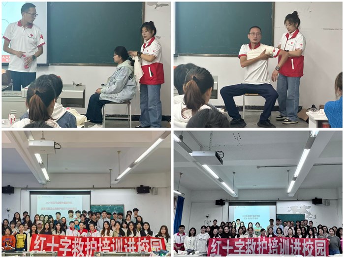 为提升大学生应急救护能力,强化校园安全防护网,10月18日至19日,我校红十字会携手校团委青年志愿者协会于二教E103、E104教室开展“红十字救护培训进校园”活动,参与师生人数共计200人。