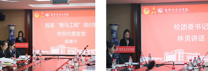 仪式进程中,校团委书记林灵为首届“青马工程”培训班学员代表颁发结业证书。国际传媒艺术学院邵薇宁代表首届学员代表发言,分享了在“青马工程”培训中的收获与感悟。她表示,通过系统学习,进一步增强了自己作为学生干部的理论素养与实践能力,为更好地服务同学、开展工作打下了坚实基础。随后,第二届全体学员集体亮相,展现出青年学生的良好精神风貌。
