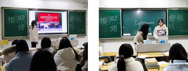 为全面提升学生宣传骨干的工作能力与专业素养,增强内容创作与宣传能力,11月18日晚,国际商学院宣传部与信息传媒部在第一教学区A206教室联合开展了摄影和新闻稿写作培训,两部门全体干事共同参与。
