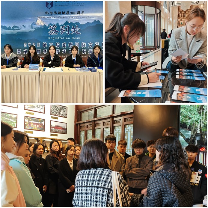 据悉,本届文学周活动是由成都市文学艺术节联合会、崇州市人民政府联合主办,以“传承天府文韵,绽放蓉城之美”为主题,汇聚中外作家、学者的大型文化活动。国际商学院学子已连续三年与成都电视台合作深度参与成都国际文学周志愿服务。同学们在服务中近距离感受文学魅力,拓宽国际视野,提升了沟通协调与团队协作能力,践行志愿精神,传递青春正能量。